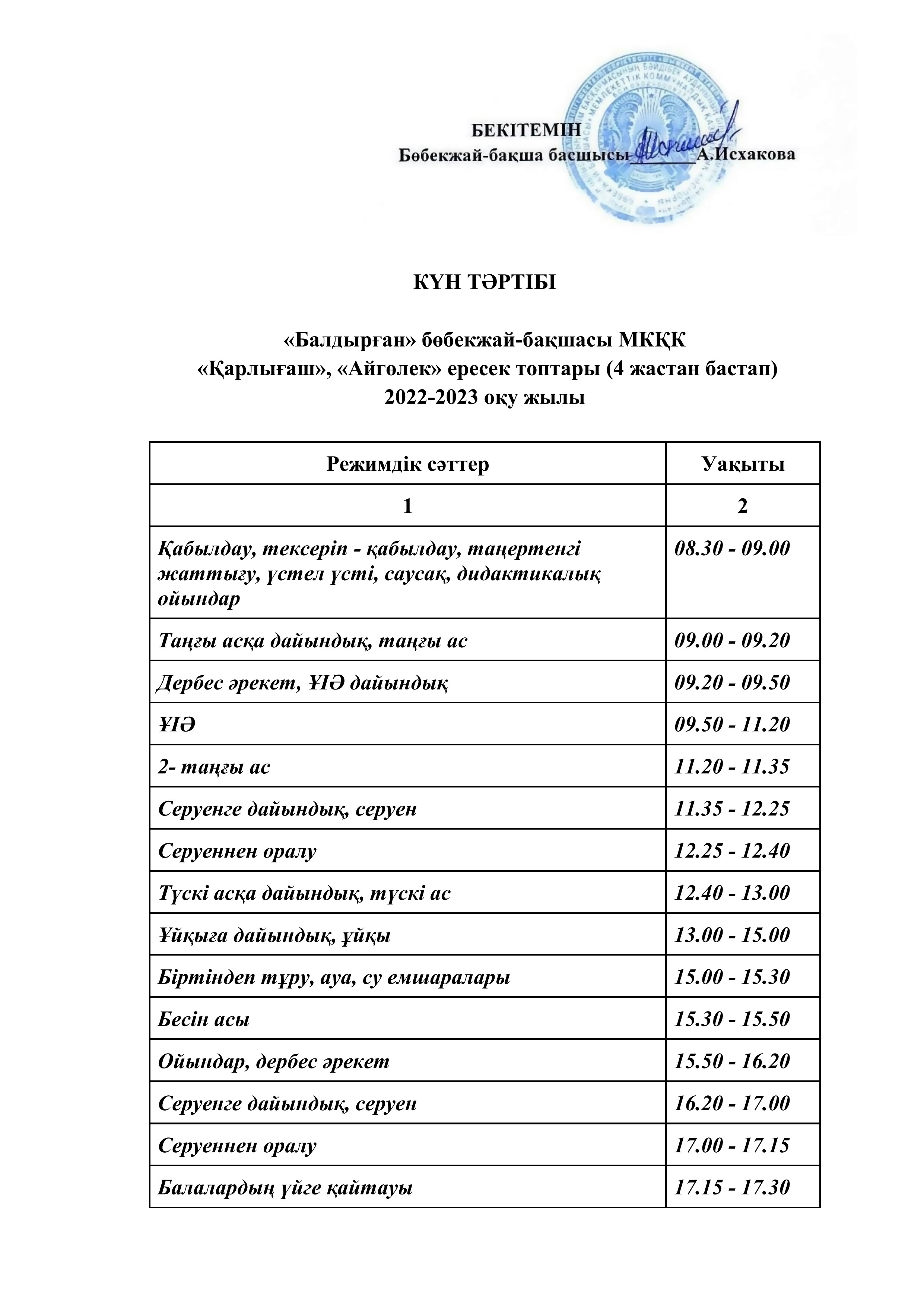| 1 | 2021 - 2022 оқу жылының оқу жоспары, ұйымдастырылған оқу қызметінің кестесі | |